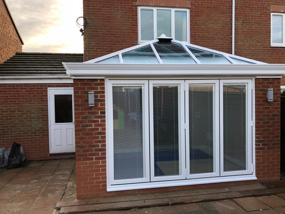 The customer wanted to make some extra space in their home while utilising their outdoors space. We helped them create that perfect space by extending with this beautiful sun room that they can use all year round, and they can even open it up on beautiful summer evenings with the bi-folding doors.